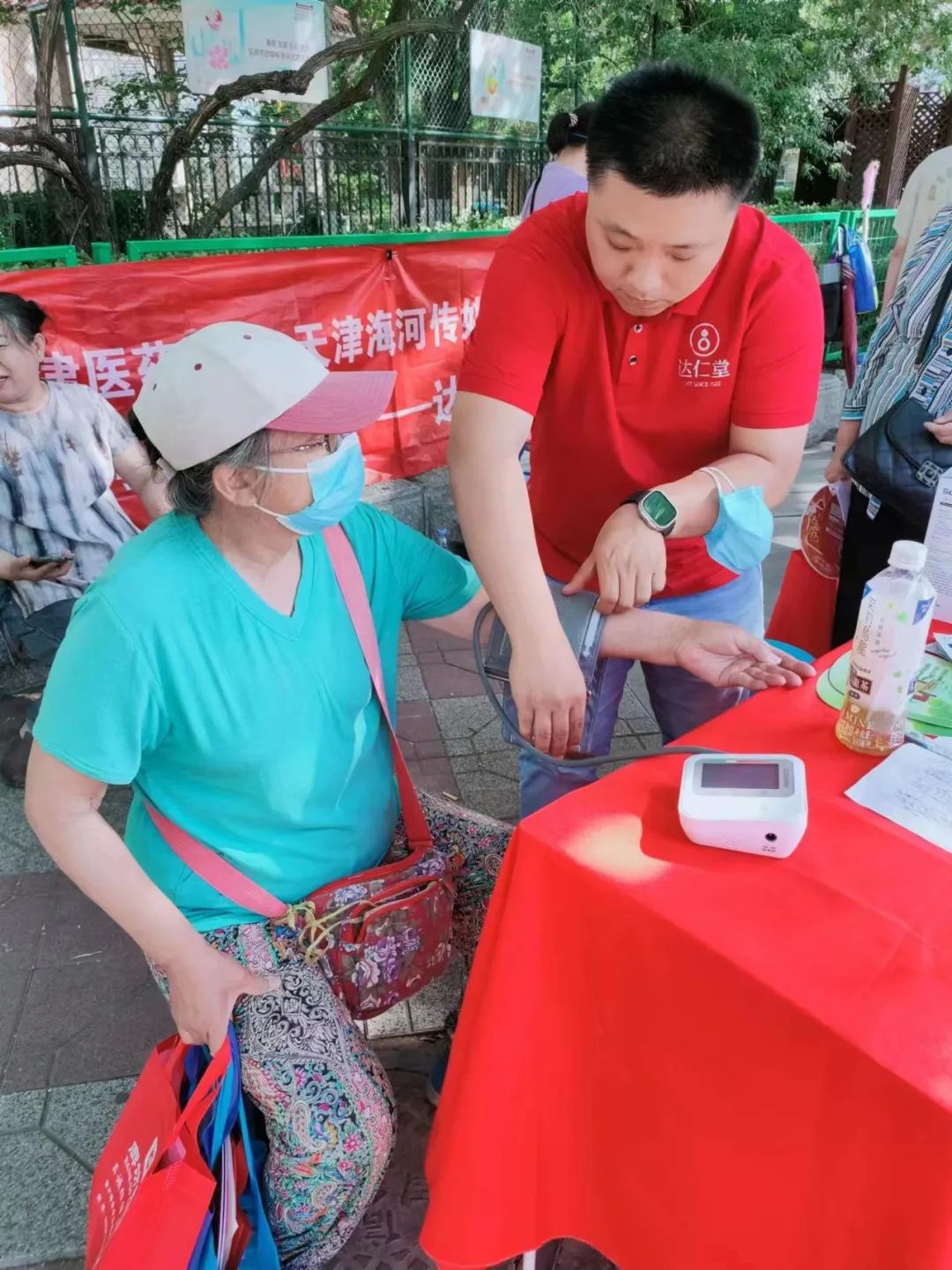 为了不影响考试当天考生及家长的备考状态,津药达仁堂的工作人员在高考前一天,奔赴市内六区连夜搭建爱心亭。